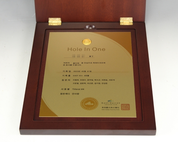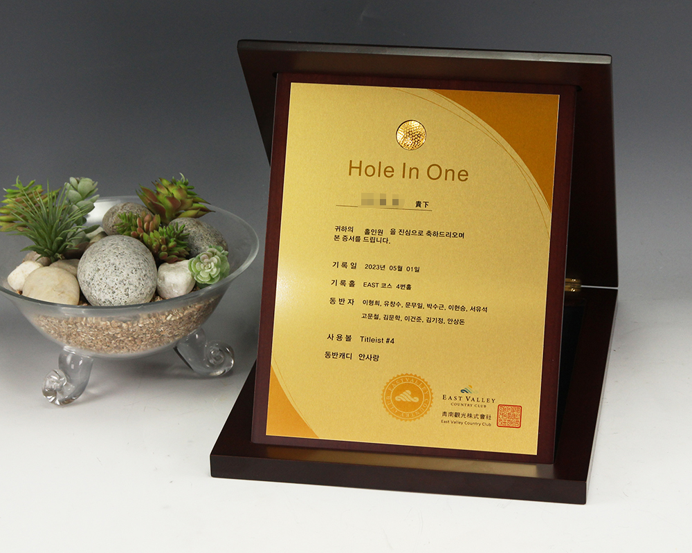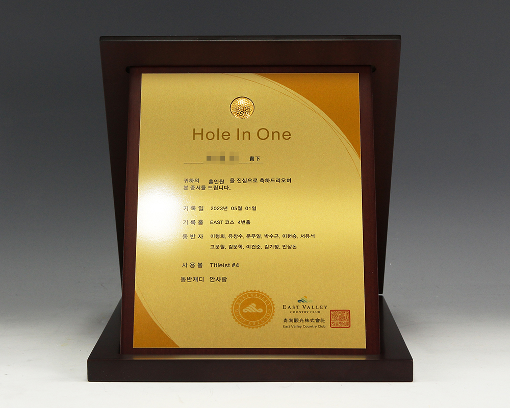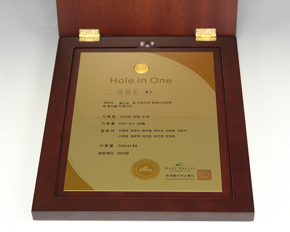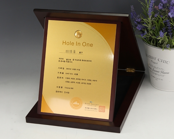 홀인원 증서 순금상패 주문 제작 제품입니다.