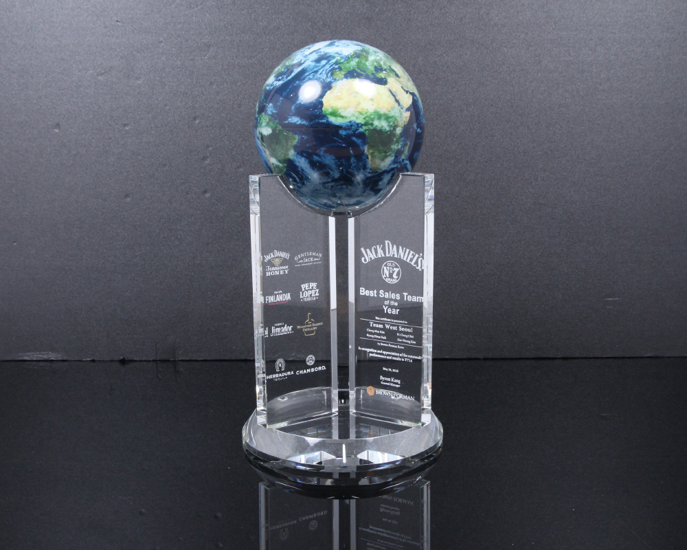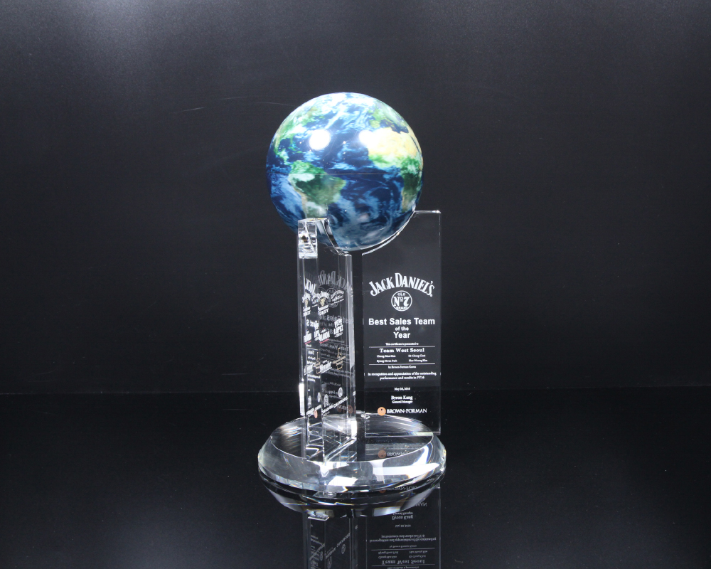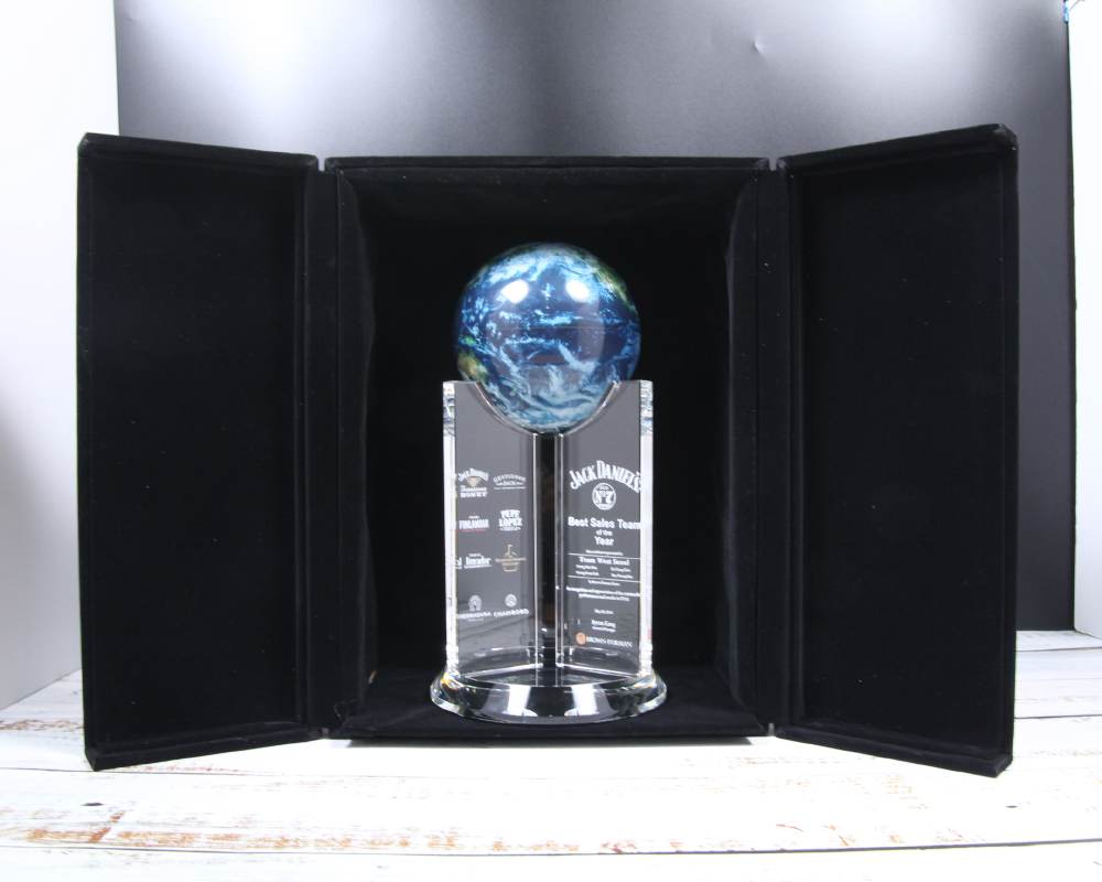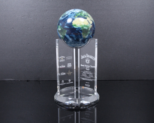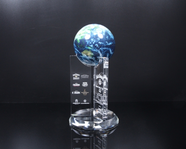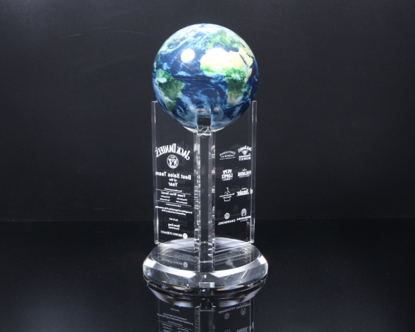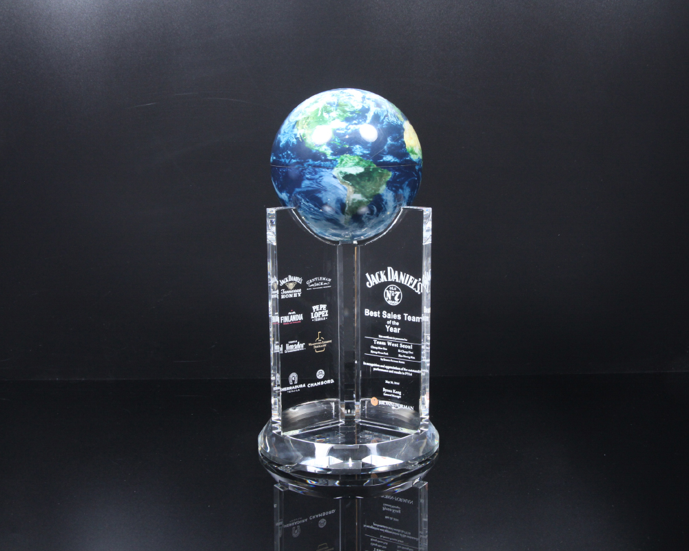 상패에 부착된 "모바글로브"는 빛과 자기장으로 회전하는 무동력 지구본입니다.