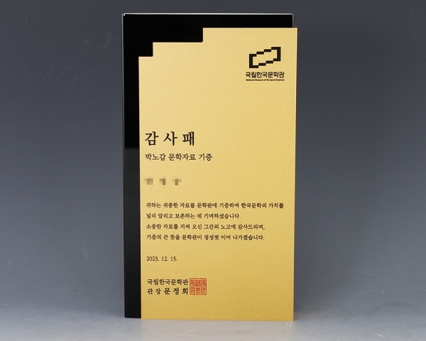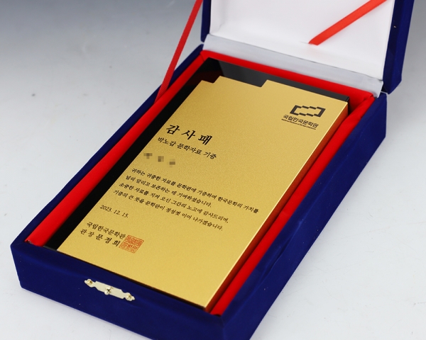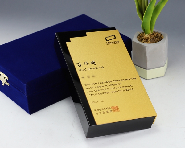 국립한국문학관 감사패 주문 제작 제품입니다.