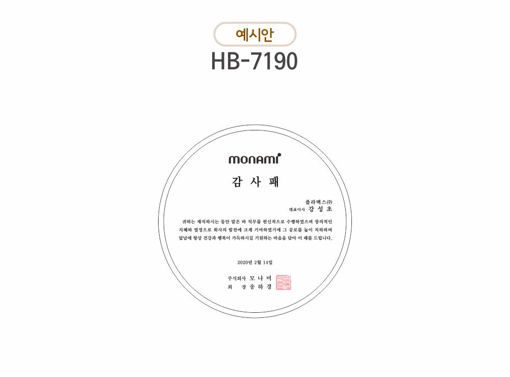| 상품코드 | 모나미 감사패 |