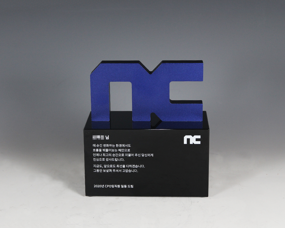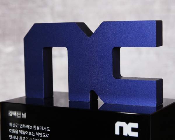 엔씨소프트에서 요청 받아 주문 제작한 상패 입니다. 엔씨소프트 로고를 중점으로 형상화하였습니다.