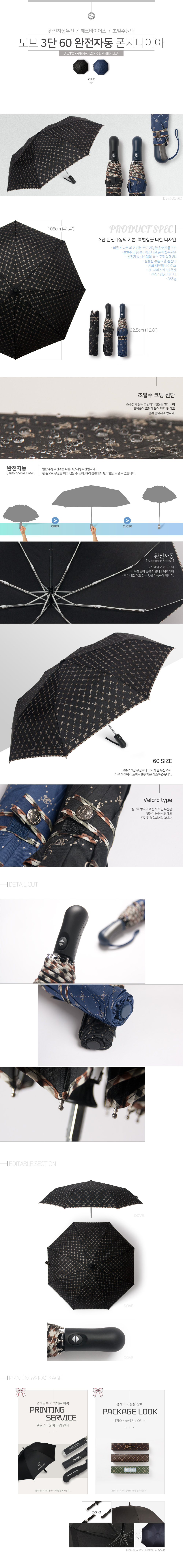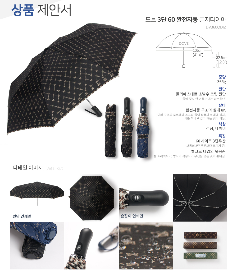 • 상품명 도브 3단완전자동우산 60 다이아 나염