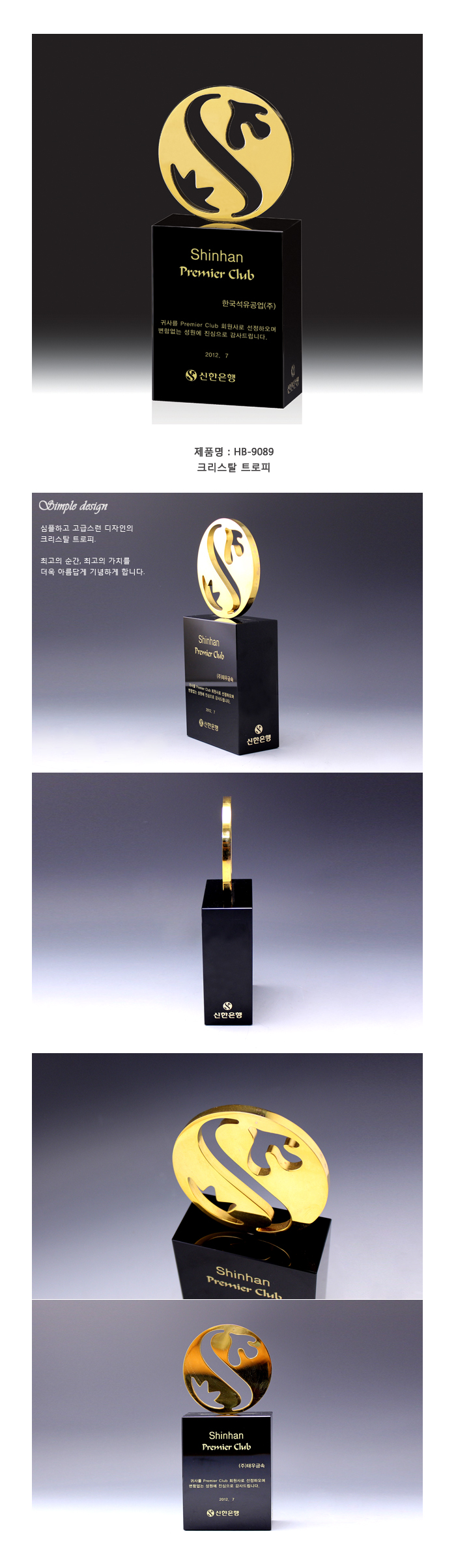 인물화 상패 크리스탈 시계 시상식트로피 블랙 크리스탈 상패 순금 상패