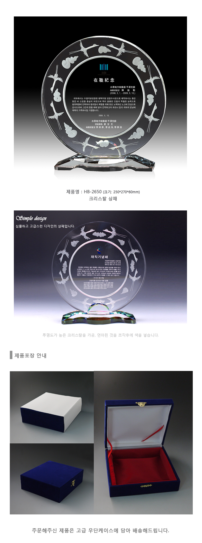 인물화 상패 크리스탈 시계 시상식트로피 블랙 크리스탈 상패 순금 상패