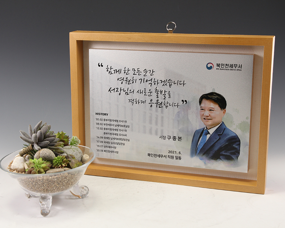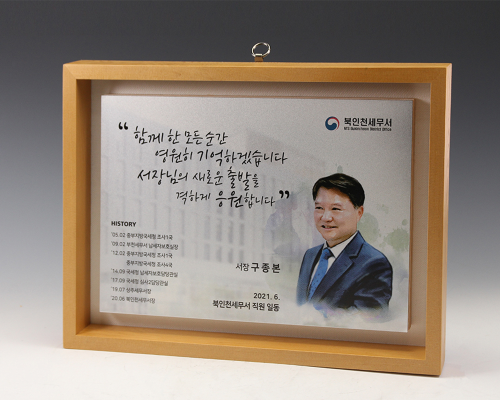 고객의 요청사항에 맞춰 제작된 하나뿐인 제작 상패입니다.