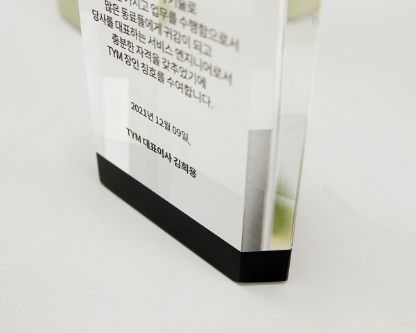 TYM 크리스탈 주문 제작 제품입니다.