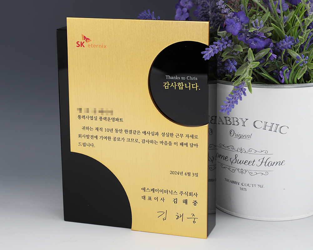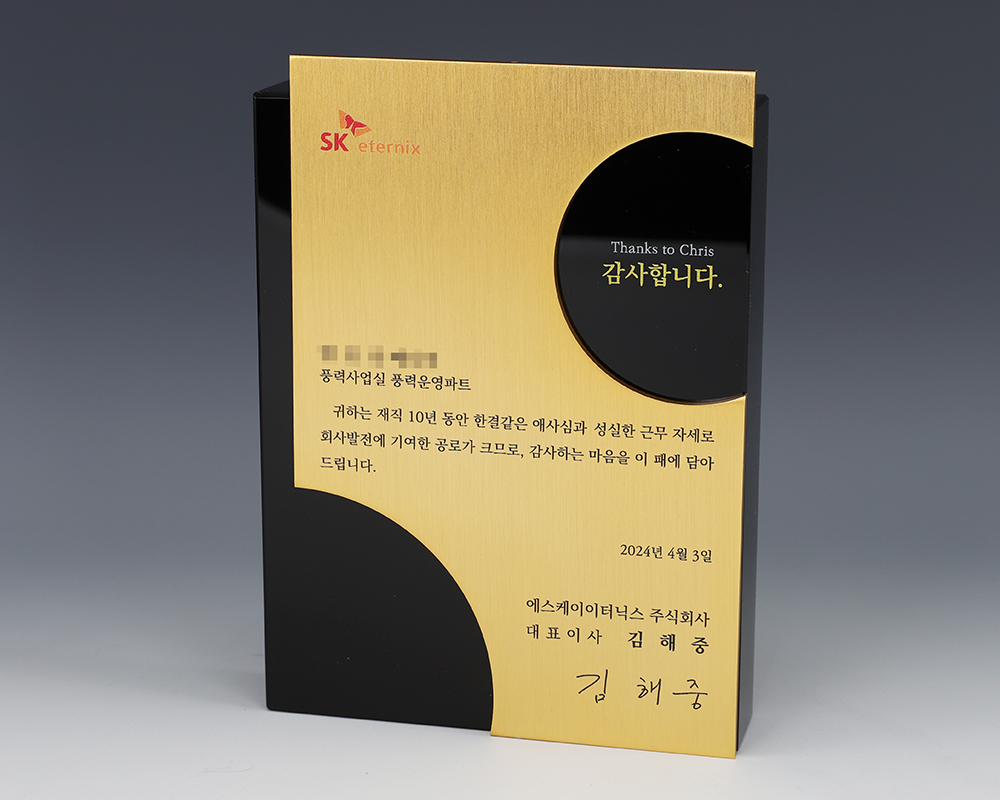 SK eternix 감사패 주문 제작 제품입니다.