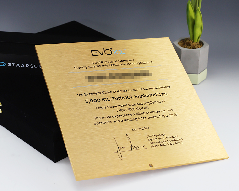 5,000 ICL 인증패 주문 제작 제품입니다.