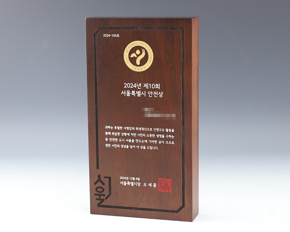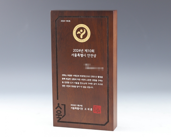 서울특별시 안전상 상패 제작 제품입니다.